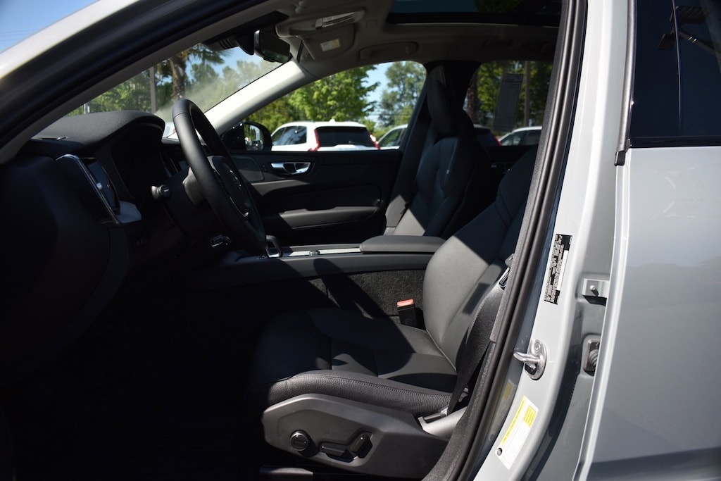 Gray 2025 Volvo XC60 Plug-In Hybrid T8 Plus AWD Automatic with Geartronic 2.0L I4 Hybrid Turbocharged DOHC 16V LEV3-SULEV30 2.0L I4 Hybrid Turbocharged DOHC 16V LEV3-SULEV30, 11 Speakers, 4-Wheel Disc Brakes, ABS brakes, Air Conditioning, Alloy wheels, AM/FM radio: SiriusXM, Anti-whiplash front head restraints, Apple CarPlay, Auto High-beam Headlights, Auto-dimming door mirrors, Auto-dimming Rear-View mirror, Automatic temperature control, Brake assist, Bumpers: body-color, Delay-off headlights, Driver door bin, Driver vanity mirror, Dual front impact airbags, Dual front side impact airbags, Electronic Stability Control, Emergency communication system: Volvo Cars App w/4 Year Subscription, Exterior Parking Camera Rear, Four wheel independent suspension, Front anti-roll bar, Front Bucket Seats, Front Center Armrest, Front dual zone A/C, Front reading lights, Fully automatic headlights, Garage door transmitter: HomeLink, Heated door mirrors, Heated Front Seats, Heated front seats, Illuminated entry, Knee airbag, Leather Shift Knob, Leatherette Upholstery, Low tire pressure warning, Memory seat, Occupant sensing airbag, Outside temperature display, Overhead airbag, Panic alarm, Passenger door bin, Passenger vanity mirror, Power door mirrors, Power driver seat, Power Liftgate, Power moonroof, Power passenger seat, Power steering, Power windows, Radio data system, Radio: High Performance Audio System, Rain sensing wipers, Rear anti-roll bar, Rear fog lights, Rear reading lights, Rear seat center armrest, Rear window defroster, Rear window wiper, Remote keyless entry, Roof rack: rails only, Security system, Speed control, Split folding rear seat, Spoiler, Steering wheel mounted audio controls, Tachometer, Telescoping steering wheel, Tilt steering wheel, Traction control, Trip computer, Turn signal indicator mirrors, Variably intermittent wipers, Wheels: 19" 5-Double Spoke Black Diamond Cut Alloy, 2.0L I4 Hybrid Turbocharged DOHC 16V LEV3-SULEV30.