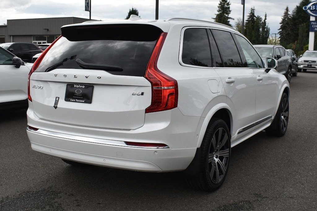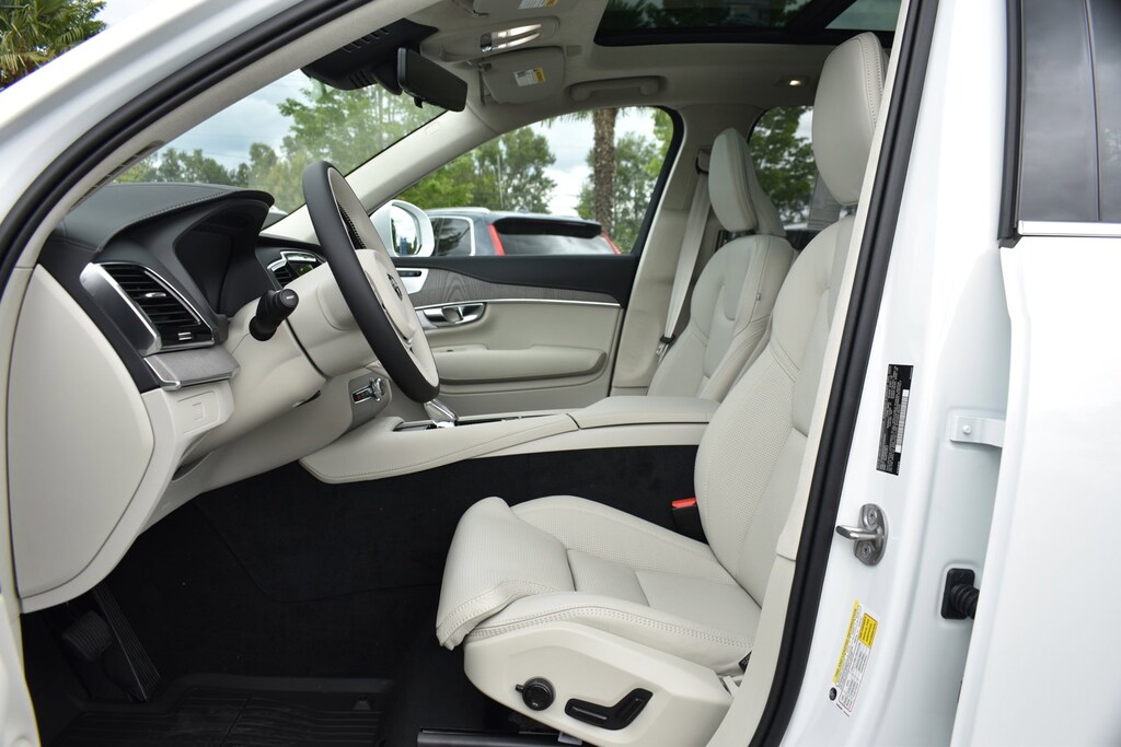 White 2025 Volvo XC90 AWD Automatic with Geartronic 2.0L I4 Turbocharged DOHC 16V LEV3-ULEV70 AWD, Blonde Perforated Nappa L Leather, 14 Speakers, 3rd row seats: bucket, 4-Wheel Disc Brakes, ABS brakes, Air Conditioning, Alloy wheels, AM/FM radio: SiriusXM, Anti-whiplash front head restraints, Apple CarPlay, Auto High-beam Headlights, Auto-dimming door mirrors, Auto-dimming Rear-View mirror, Automatic temperature control, Brake assist, Bumpers: body-color, Delay-off headlights, Driver door bin, Driver vanity mirror, Dual front impact airbags, Dual front side impact airbags, Electronic Stability Control, Emergency communication system: Volvo Cars App w/4 Year Subscription, Exterior Parking Camera Rear, Four wheel independent suspension, Front anti-roll bar, Front Bucket Seats, Front Center Armrest w/Storage, Front dual zone A/C, Front fog lights, Front reading lights, Fully automatic headlights, Garage door transmitter: HomeLink, Genuine wood dashboard insert, Genuine wood door panel insert, harman/kardon® Speakers, Headlight cleaning, Heads-Up Display, Heated & Ventilated Front Bucket Seats, Heated door mirrors, Heated front seats, Heated rear seats, Heated steering wheel, Illuminated entry, Integrated rear child seats, Knee airbag, Low tire pressure warning, Memory seat, Navigation System, Occupant sensing airbag, Outside temperature display, Overhead airbag, Panic alarm, Passenger door bin, Passenger vanity mirror, Perforated Nappa Leather Upholstery, Power door mirrors, Power driver seat, Power Liftgate, Power moonroof, Power passenger seat, Power steering, Power windows, Radio data system, Radio: harman/kardon Premium Audio System, Rain sensing wipers, Rear air conditioning, Rear anti-roll bar, Rear dual zone A/C, Rear fog lights, Rear reading lights, Rear seat center armrest, Rear window defroster, Rear window wiper, Remote keyless entry, Roof rack: rails only, Security system, Speed control, Speed-sensing steering, Split folding rear seat, Spoiler, Steering wheel mounted audio controls, Tachometer, Telescoping steering wheel, Traction control, Trip computer, Turn signal indicator mirrors, Variably intermittent wipers, Ventilated front seats, Wheels: 21" 8-Multi Spoke Black Diamond Cut Alloy, AWD, Blonde Perforated Nappa L Leather.